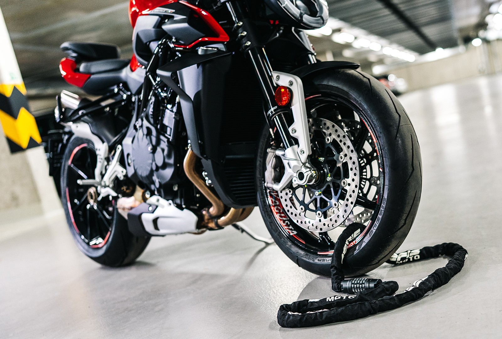 The chain made of high-quality hardened steel with a link diameter of a minimum thickness of 8 millimeters is a truly massive protection for your motorcycle, scooter or bicycle. Unlike steel cables and lower-quality chains, it can significantly better resist attempts to overcome the security by destructive methods.