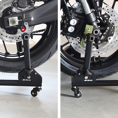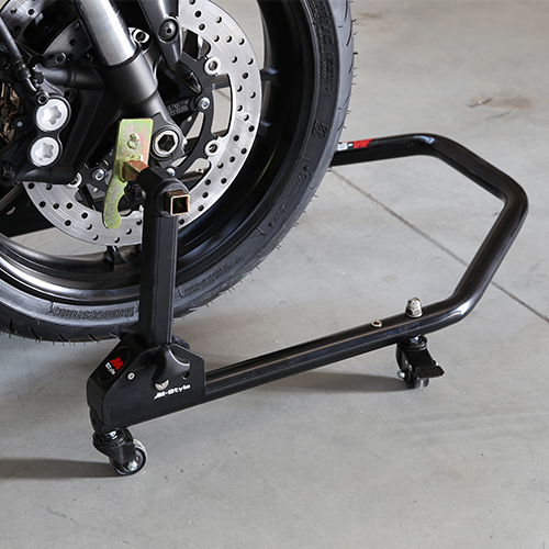 Motorcycle stand is an indispensable tool needed for motorcycle maintenance and long-term parking. Thanks to its unique mechanism it can be folded compactly and easily stored, hung on the wall or transported in a car trunk.