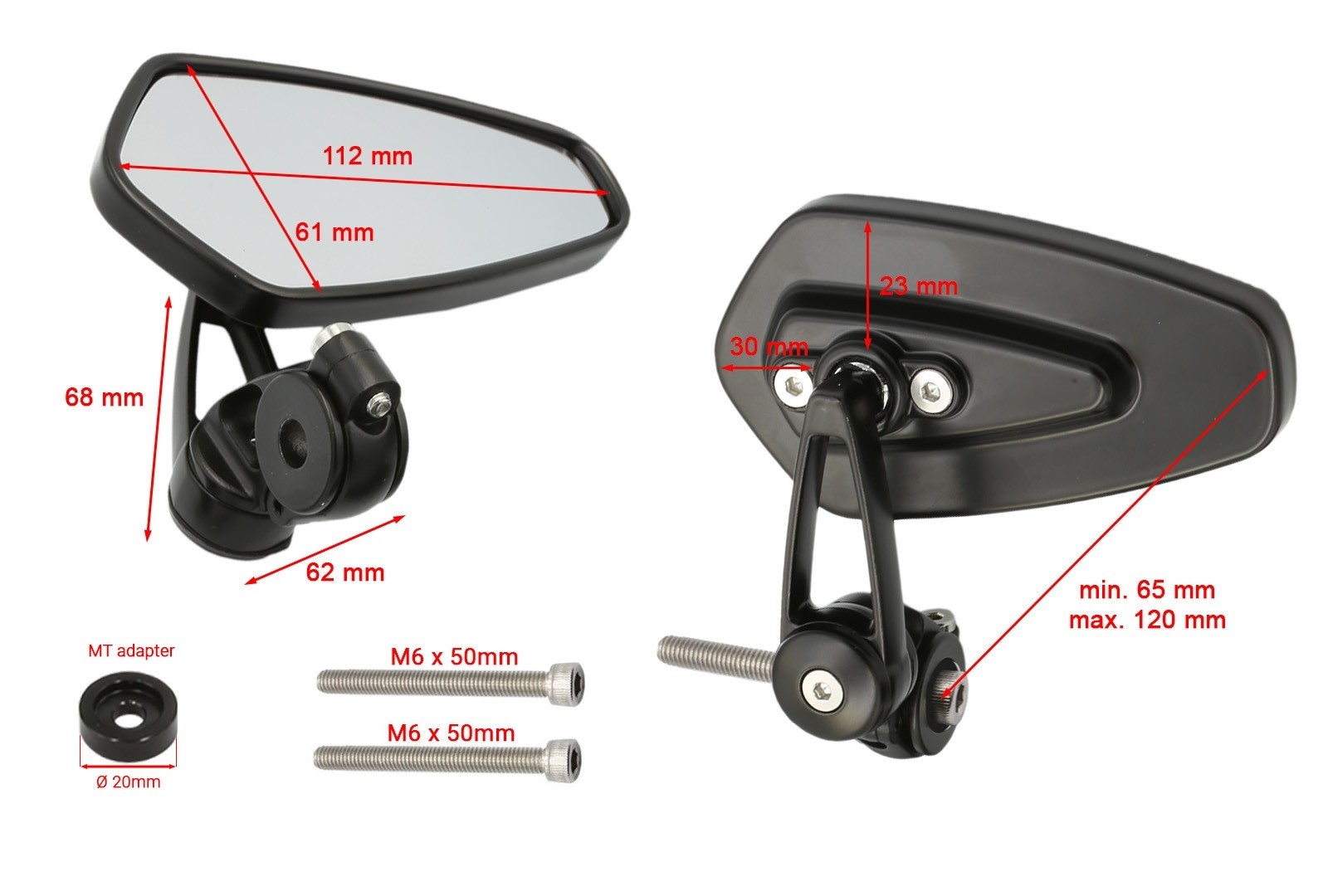 Flip mirrors can be installed not only in two different ways, but also due to their great variability, they can be folded, tilted and rotated exactly according to your needs. Whether it's the classic way, up and turned out, which will offer you the best rearward visibility, turned inward for a narrower handlebar profile, which you will appreciate especially when weaving through dense urban traffic, or completely turned down under the handlebars in the cafe racer style for an original appearance and rearward view, which will be appreciated especially by larger riders who in the classic mirror position most commonly observe their own shoulders.
