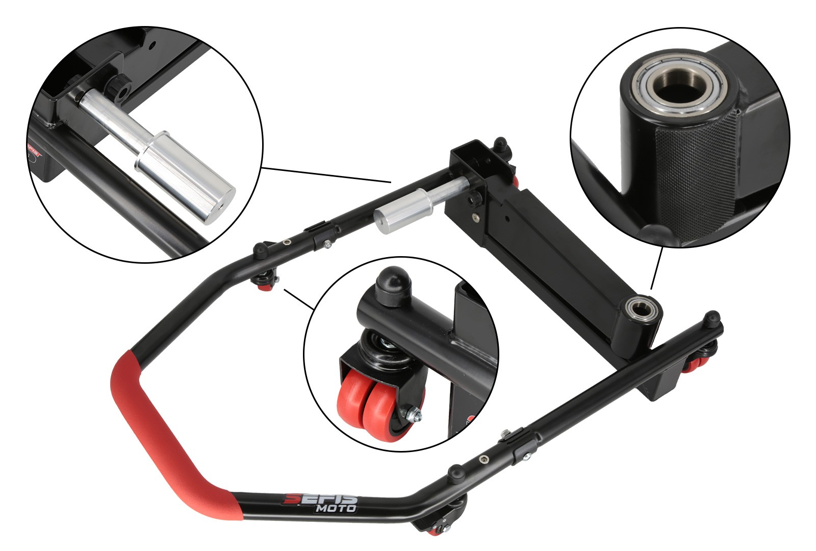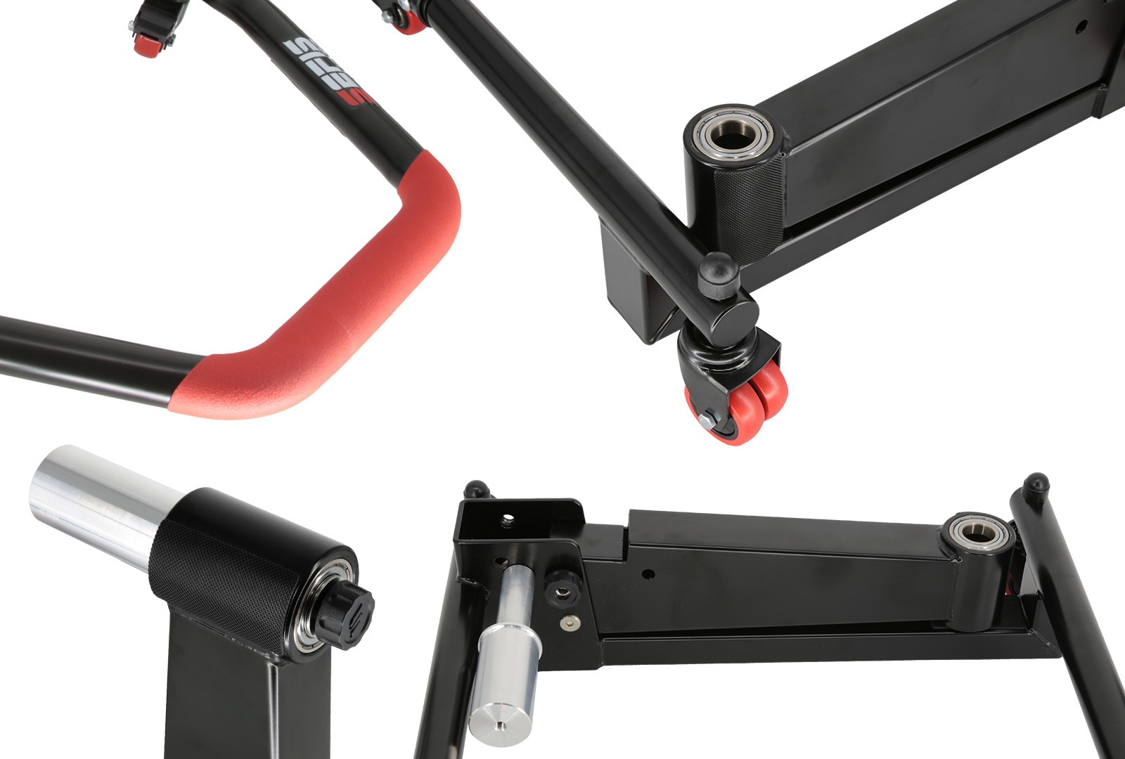 As with other modern SEFIS stands, the M22U also comes with an ergonomic rubberized handle. This not only looks good, but also provides a firm and reliable grip, ideal for comfortably lifting the motorcycle. In addition to comfort, the handle is also non-slip for better safety, especially when used in a workshop or when cleaning the chain with dirty hands or gloves.