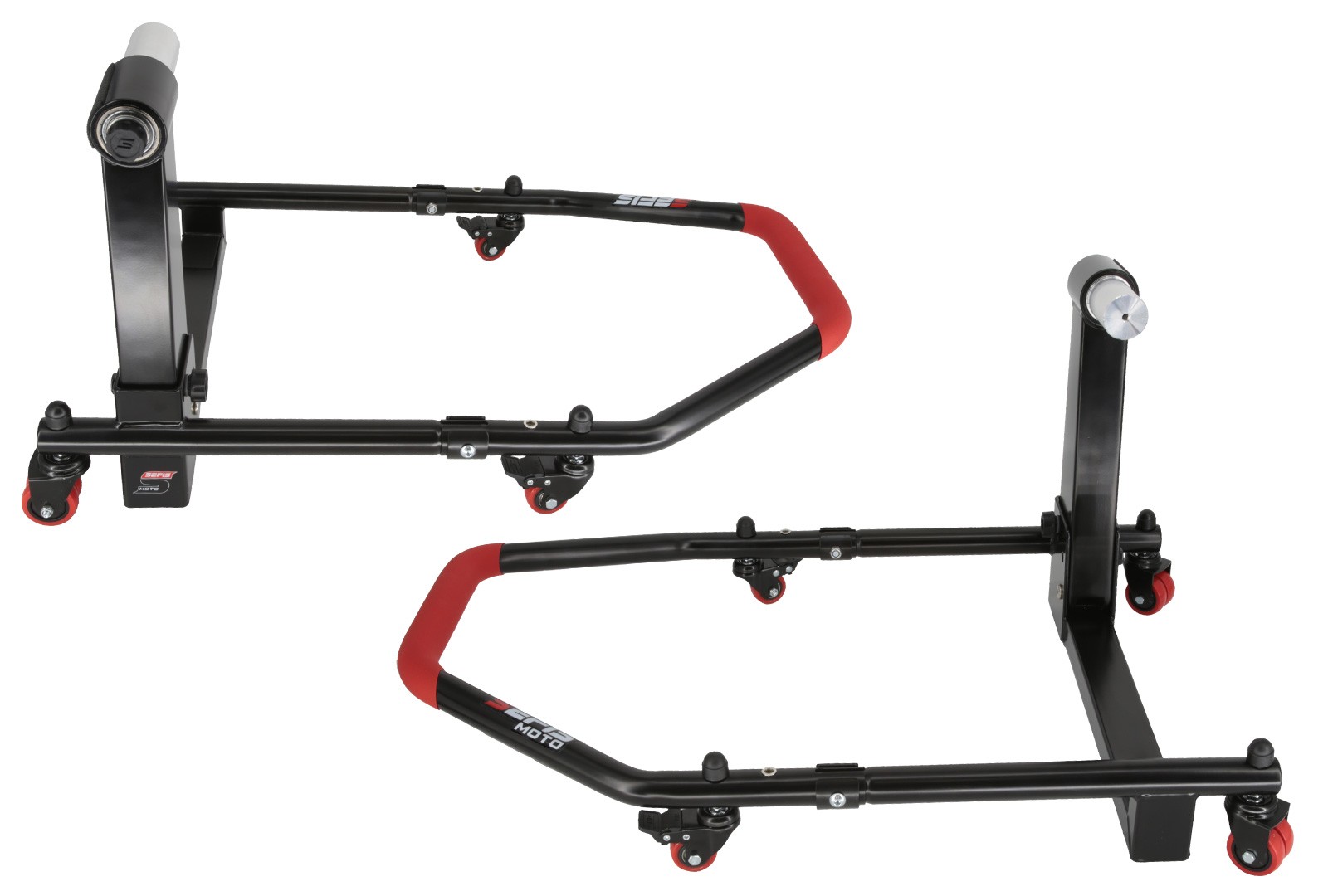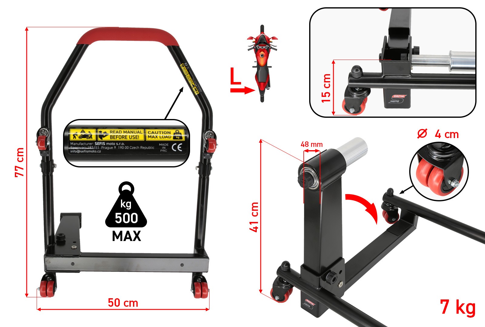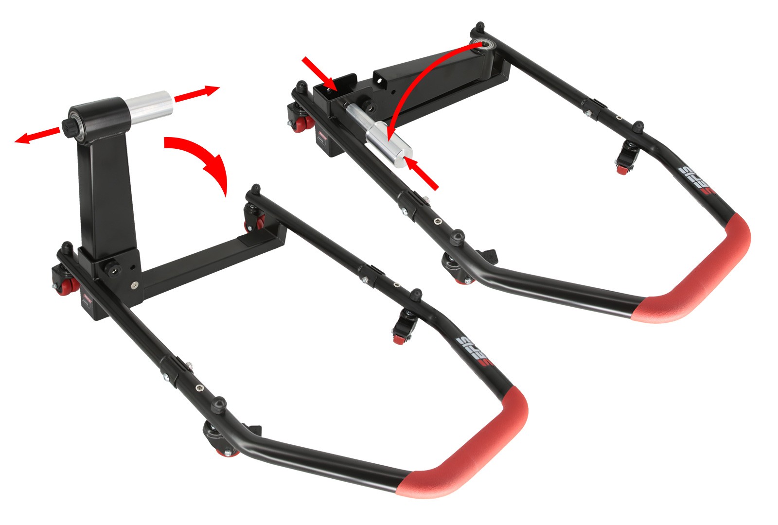 Motorcycles with swing arm require the right stand for lifting and servicing. With the SEFIS M22U folding stand, this will not be a problem. It is easy to handle and anyone can lift the motorcycle without any help. The left-sided swingarm rear stand is The left-hand flying stand is suitable for motorcycles of all brands, which can be found in the adapter table.