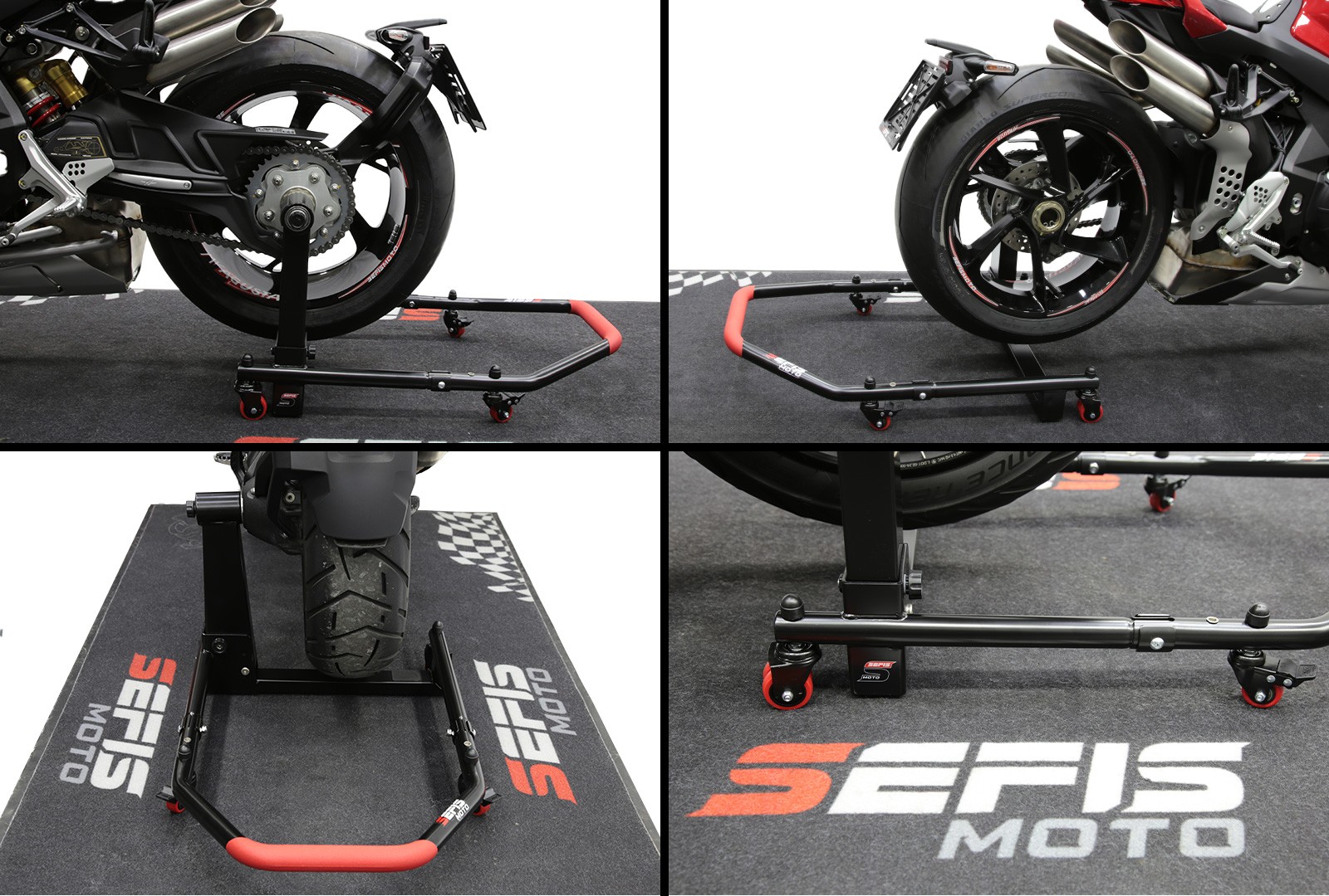 New SEFIS M22U single left-sided folding mobile swing arm rear paddock stand for a motorcycle