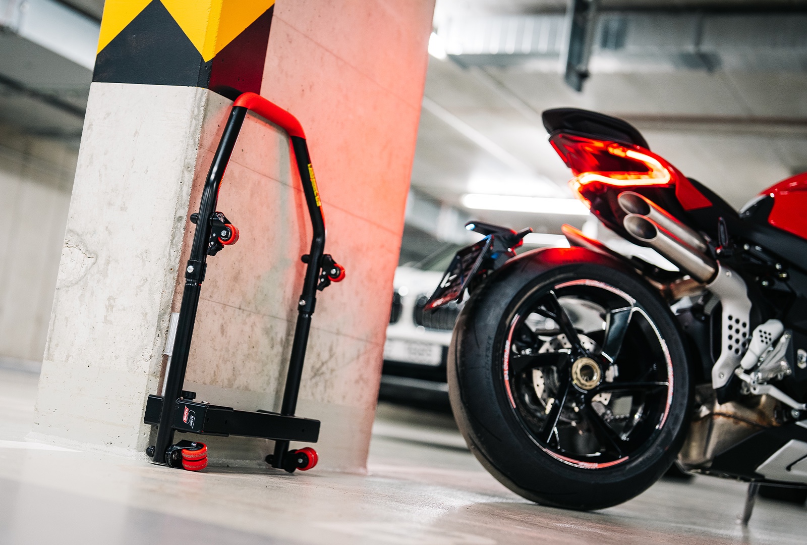 One of the main advantages of the M22UR paddock stand is its full mobility in all directions. It allows incredibly easy handling of the motorcycle, even in a small space. It is thus ideal for maintenance as it allows you to turn the motorcycle as needed during work or, for example, to easily store it even in small garages with limited space.
