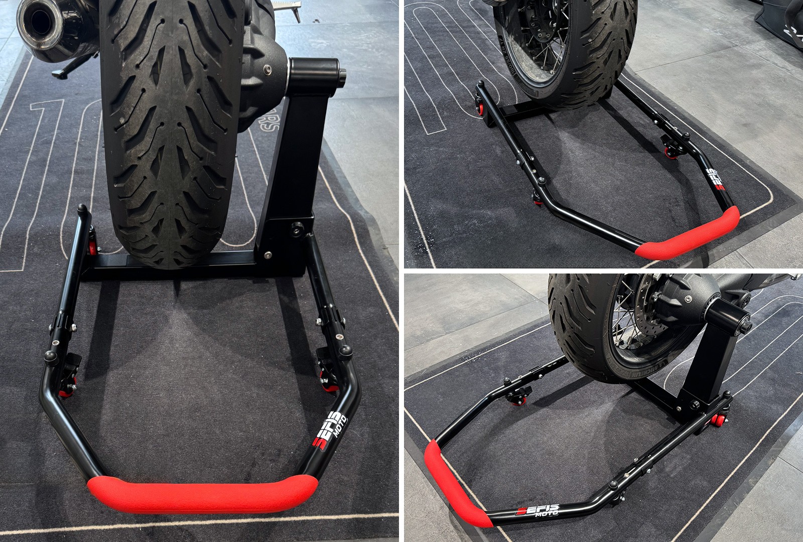 As with other modern SEFIS stands, the M22UR also comes with an ergonomic rubberized handle. This not only looks good, but also provides a firm and reliable grip, ideal for comfortably lifting the motorcycle. In addition to comfort, the handle is also non-slip for better safety, especially when used in a workshop or when cleaning the chain with dirty hands or gloves.