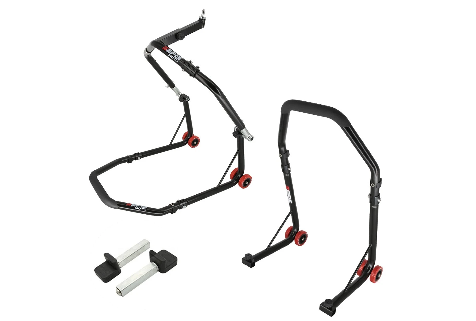SEFIS D18 front head lift paddock stand and rear paddock stand set - paddles - black