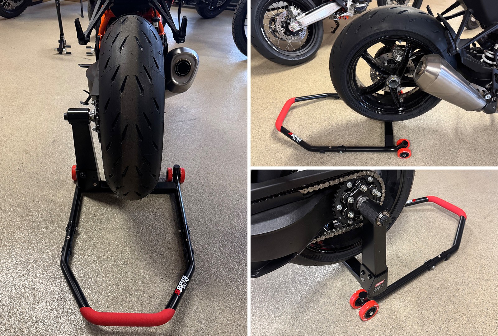 As with other modern SEFIS stands, the M22 also comes with an ergonomic rubberized handle. This not only looks good, but also provides a firm and reliable grip, ideal for comfortably lifting the motorcycle. In addition to comfort, the handle is also non-slip for better safety, especially when used in a workshop or when cleaning the chain with dirty hands or gloves.