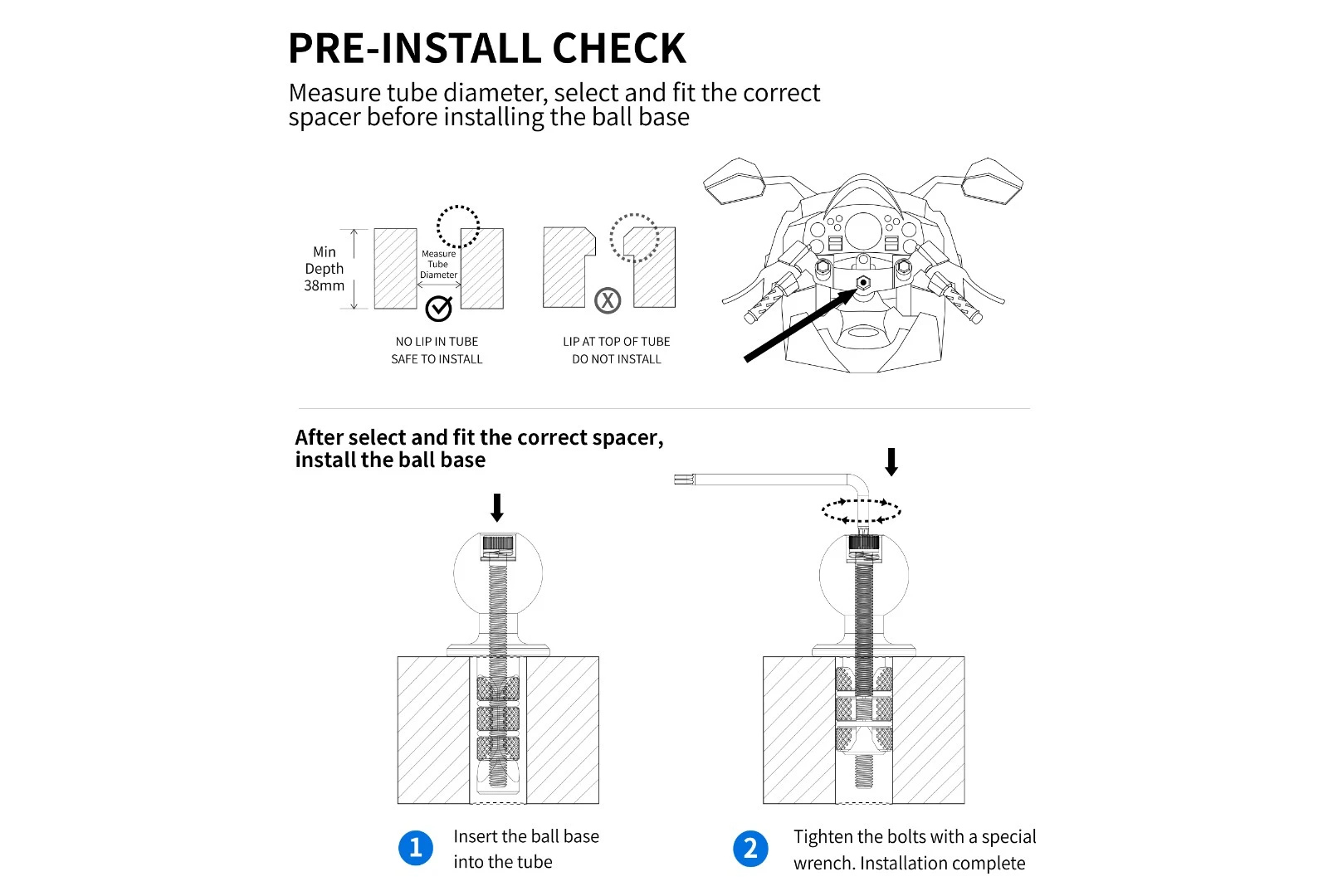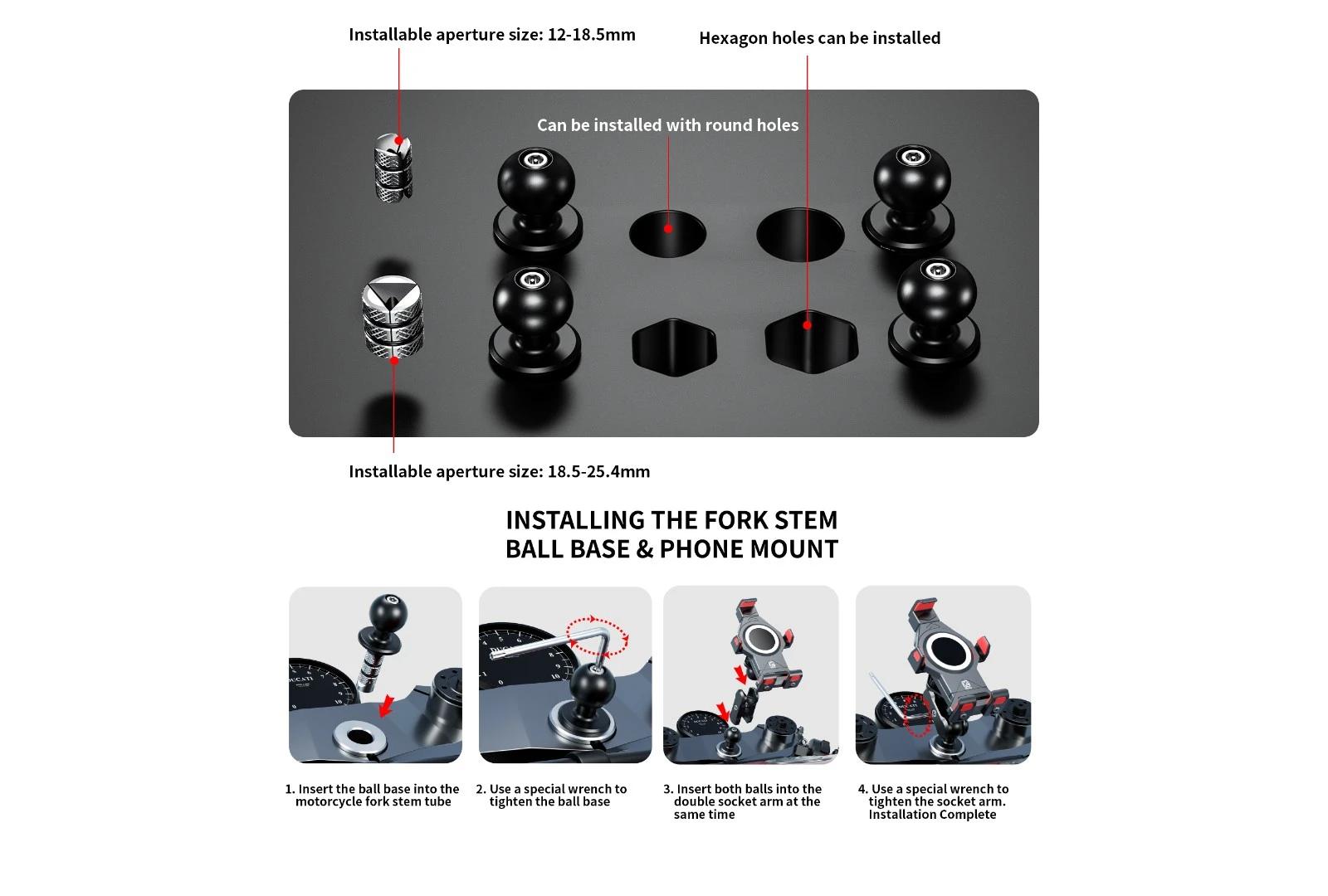SEFIS S-ball adapter into the neck of the steering 12mm-25.4mm